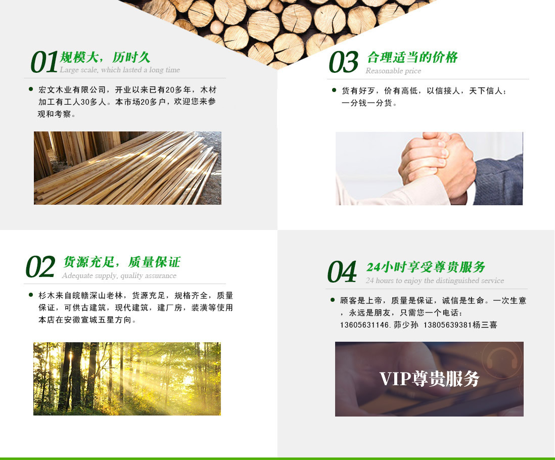 Ðû³ÇÊкêÎÄľҵÓÐÏÞ¹«Ë¾£¬¿ªÒµÒÔÀ´ÒÑÓÐ20¶àÄ꣬ľ²Ä¼Ó¹¤Óй¤ÈË30¶àÈË¡£É¼Ä¾À´×ÔÍî¸ÓÉîɽÀÏÁÖ£¬»õÔ´³ä×㣬¹æ¸ñÆëÈ«£¬ÖÊÁ¿±£Ö¤¡£¿É¹©¹Å½¨Öþ£¬ÏÖ´ú½¨Öþ£¬½¨³§·¿£¬×°äêʹÓ᣶àÄêÀ´ÎÒÃÇÒÔ£»¹Ë¿ÍÊÇÉϵۣ¬ÖÊÁ¿ÊDZ£Ö¤£¬³ÏÐÅÊÇÉúÃü¡£Ò»´ÎÉúÒâ